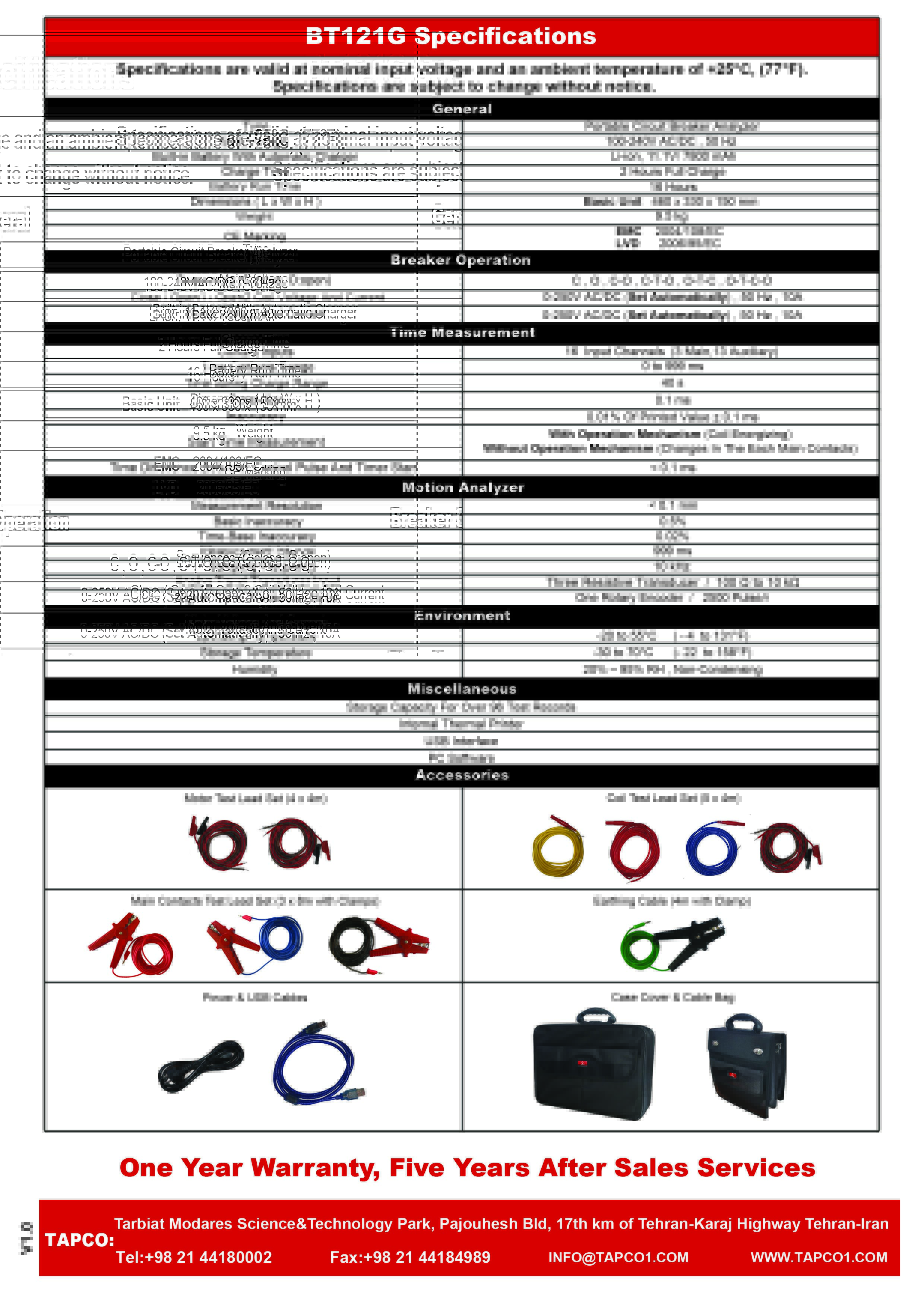 BT121G انواع مانورها را به كليد قدرت اعمال کرده و اطلاعات الكتريكي و مكانيكي قسمت هاي مختلف مانند كنتاكت هاي اصلي و كمكي، بوبين هاي قطع و وصل، موتور شارژ فنر كليد و ... را استخراج و با نمایش نتایج و رسم منحنی، امکان تجزیه و تحلیل دقیق عملکرد کلید را فراهم می کند.